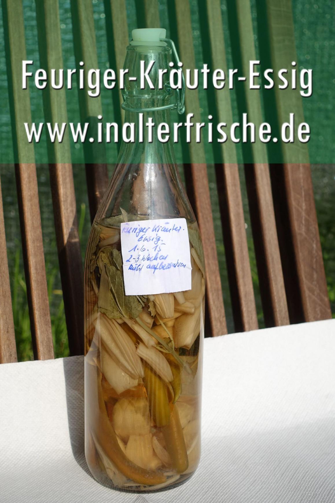 auffüllen, die Flasche gut verschließen und gut durchschütteln. Den Kräuter-Essig 2 bis 3 Wochen kühl aufbewahren und aller 2 Tage durchschütteln.
